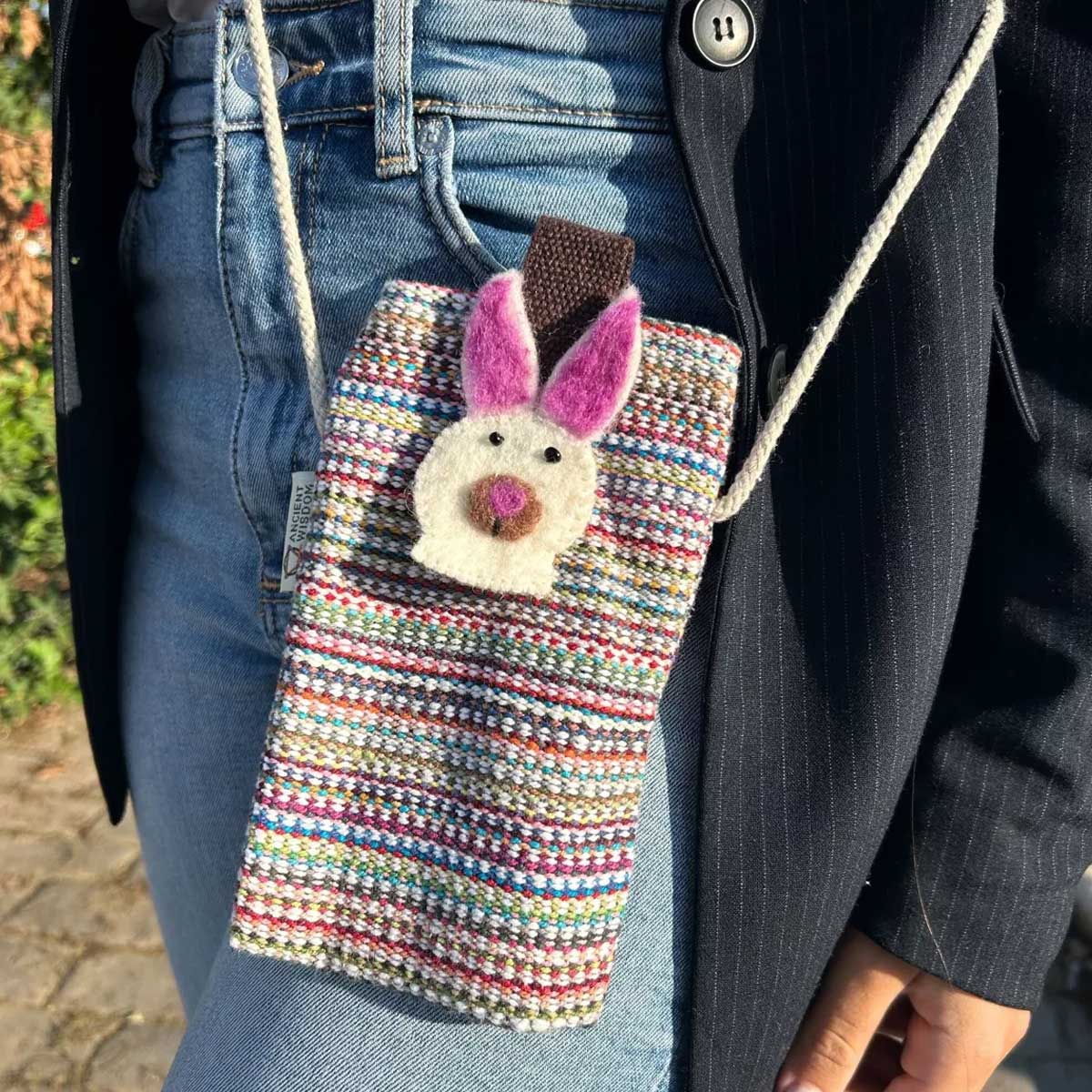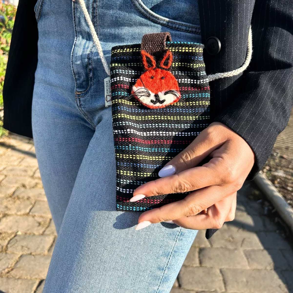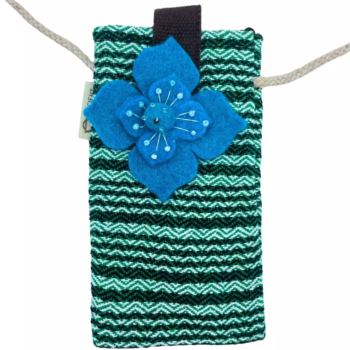 Chaque sac bandoulière téléphone naît de mains expertes au Népal. Loin des chaînes de production impersonnelles, nos artisans tissent une intention dans chaque point. Le motif rayé n’est pas seulement joyeux. Il symbolise l’énergie et le mouvement. La décoration unique en feutre, solidement fixée, est une petite œuvre d’art. C’est l’antithèse de la production de masse. C’est un objet avec une âme.